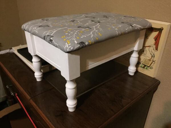 White wood stool with patterned cover